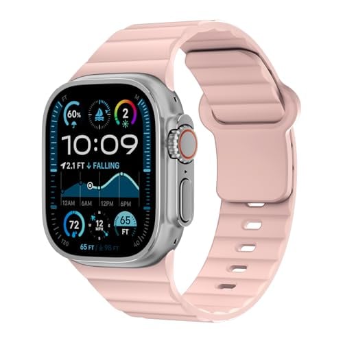 【通気性抜群】スポーツ用と割り切った造り。純正だと密着して手首との間の通気性が悪く、常に濡れている感じがします。こちらは凸凹になって居る為通気性もあり水が貯まりづらく、運動時のApple Watch バンドとして使いやすいです。純正のスポーツシリコンバンドと比べ、薄くて軽いシリコンです。コンパチブル アップルウォッチ バンド 46mmは140 - 220mmの手首周りに適します。購入する前に、お手首の周りを測定してください。手首のサイズが細すぎるか太すぎるかを心配する必要はありません。