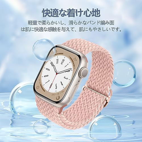 ⌚【通気性抜群・水洗える】アップルウォッチ 弾性バンド。網目で通気性が抜群で、スポーツやアウトドアでも乾いた状態を保ちます。ジム、登山、ハイキング、水泳、キャンプ、旅行、さまざまなシーンに適用できます。変形にくい素材なので、汚してしまった場合でも丸洗いこともできて、便利です。