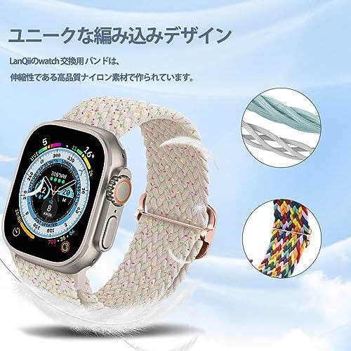⌚【快適な着け心地】LanqiiのApple watch 交換用 バンドは、伸縮性である高品質ナイロン素材で作られています。軽量で柔らかいし、滑らかなバンド編み面は肌に快適な感触を与えて、肌にもやさしいです。バンドの長さも丁度良い感じに調整できて、ユルすぎず、キツすぎず、いつも快適に着けます。