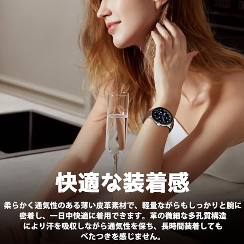 【高品質素材】このバンドは、厳選された高品質レザー素材を使用しており、肌触りがとても柔らかく、手首をやさしく包み込みます。肌に優しい素材で、長時間の着用でも疲れを感じさせません。また、洗練されたデザインと職人の丁寧な手仕事による仕上げにより、日々の使用にも耐えうる耐久性を備えています。注: レザーバンドを水に浸さないでください。水との接触を避けることをお勧めします。濡れた後はできるだけ早く柔らかい布で乾かしてください。