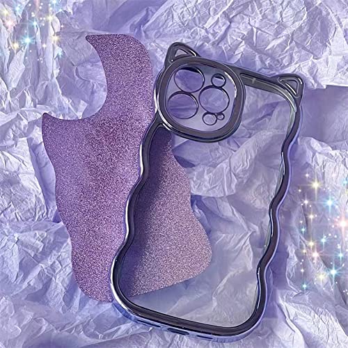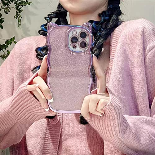 【Kunyehdo】 スマホケース iPhone 13 ケース カバー 対応 メッキ 光沢 ピンク 青 紫 緑 閃粉 猫耳 猫柄 キラキラ おもしろ iPhoneケース 女 軽贅沢 かわいい 薄型 スリム 人気 おしゃれ 韓国 お洒落 立体 波形 全面保護 シリコンゴム 創意 落下防止 ソフトケース (iPhone13,紫)
