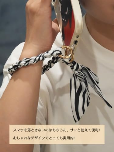 [Oumino] スマホストラップ ハンドストラップ 携帯ストラップ リストストラップ 手首 バッグストラップ ポーチ iPhone 対応 極太 スカーフ風 おしゃれ バッグチャーム 可愛い アウトドア 落下防止 全機種対応 (ブラックホワイト)