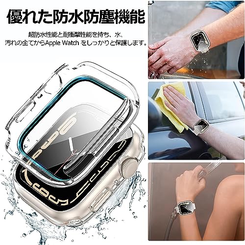 ZIZUCHLE for Apple Watchケース 45mm 44mm 41mm 40mm 【3 in 1防水設計】 取り外しツール付き アップルウォッチ液晶保護フィルム+防水保護ケース+背面ケースの3 in 1デザイン Series 8/7/6/SE3/SE/5/4高タッチ感度 PC素材 全面保護 防傷 衝撃吸収 (Series6/5/4,44mm,クリア)