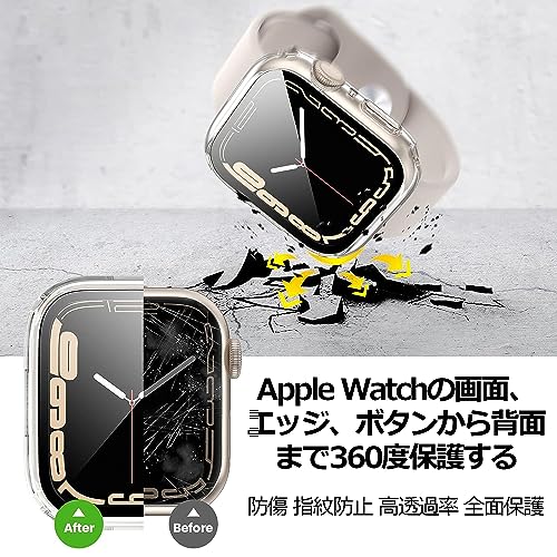 【液晶保護フィルム+保護ケース+背面保護ケースの3 in 1設計】本製品は、Apple Watchの画面、エッジ、ボタンから背面まで360度保護する、Apple Watchケース/フィルム一体型の保護ケース+背面保護ケースの3つの合体設計です。13H硬度の強化ガラスフィルムは、キズに強く耐久性があり、高解像度で高透過率、タッチもスムーズです。PC素材の保護ケースは、落下やキズなどからあなたのApple Watchを保護し、新品の状態を長持ちさせます。