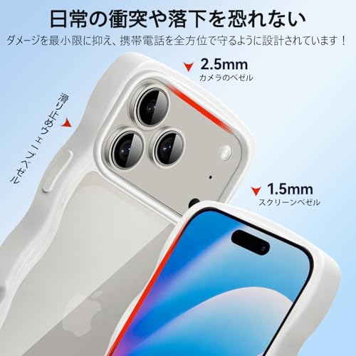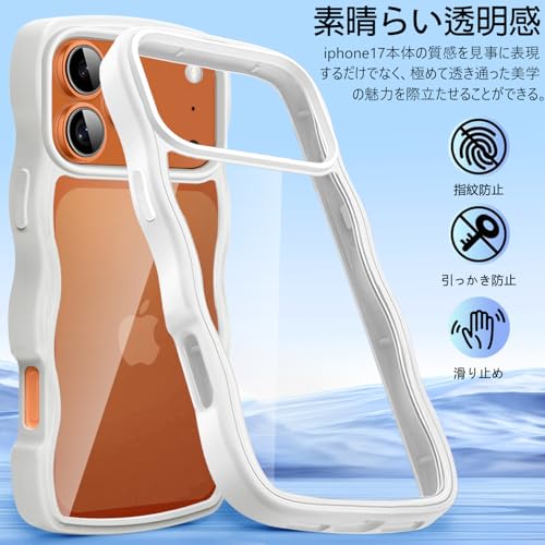 iPhone 17 Pro Max 用 ケース クリア 波型 うねうね かわいい 韓国 ソフト 超軽量 耐衝撃 ストラップホール付き おしゃれ ウェーブ カバー アイフォン17 Pro Max 用 スマホケース とうめい 透明(ホワイト)