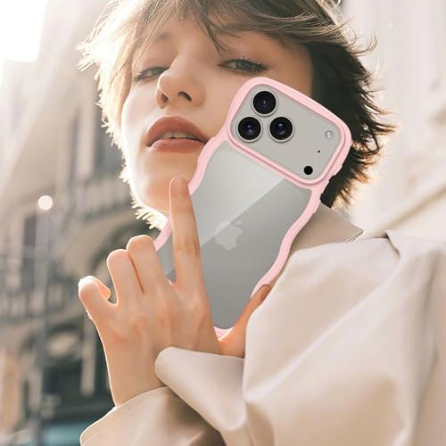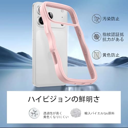 iPhone 17 Pro 用 ケース クリア かわいい 波状フレーム うねうね 耐衝撃 アイフォン 17 Pro 用 スマホケース 滑り止め 人気 可愛い カバー 落下防止 ワイヤレス充電対応 (ピンク)