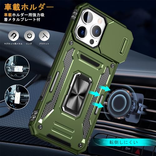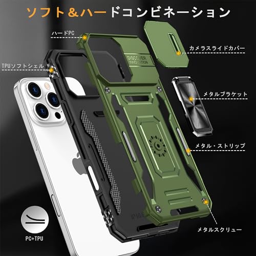 GOLDWANGWANG iPhone 12ケース 全方位保護 リング付き スライドカメラプロテクター MIL規格 耐衝撃 スタンド 車載対応 - グリーン
