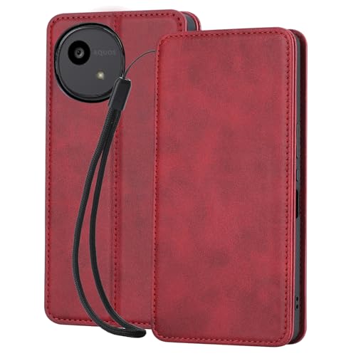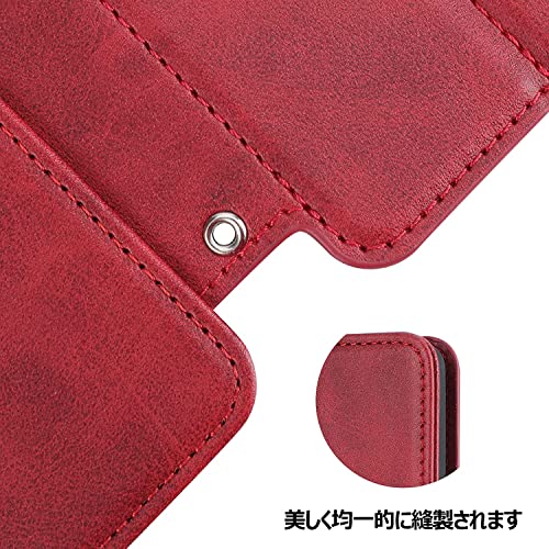 AQUOS Wish5 ケース 手帳型 wangChuan SH-52F スマホケース レザー カード収納 内蔵マグネット式 レッド