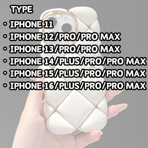 スマホケース ケース キルティング ぽこぽこ ギャル 女子高校生 コギャル 韓国 可愛い 11 12 13 14 15 16 plus pro max (ホワイト,12)