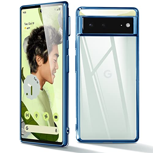 Google Pixel6 ケース クリア TPU 透明 薄型 軽量 グーグル ピクセル 6 スマホケース 耐衝撃 メッキ加工 ソフト 人気 ワイヤレス充電対応 (ブルー)