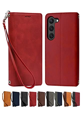 シズカウィル Galaxy S23 SC-51D SCG19 ケース カバー 手帳型 本革調 レザーケース レッド 1個入り
