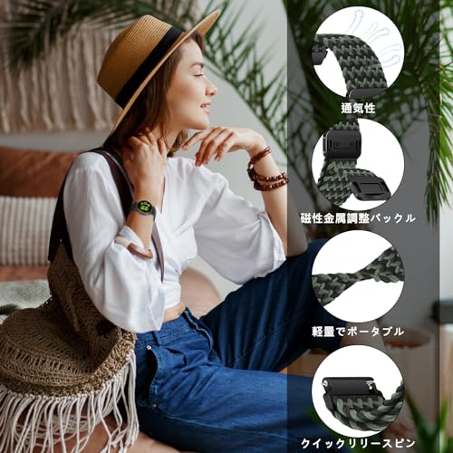 [ZoRoll] バンド 20 mm/22 mm ナイロンバンド 20ミリ 対応 編み伸縮性 腕時計ベルト スポーツストラップ 20ミリ 22ミリソフト 通気性 快適性 交換ベルト磁気クラスプ クイックリリース 脱着便利 男女兼用 (20 mm対応 ブラック+グリーン)