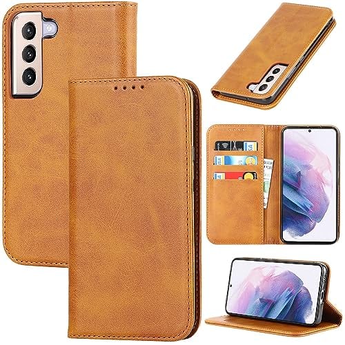 対応 Galaxy s22 ケース 手帳型 スマホケース サムスン ギャラクシーS22 sc-51c scg13 カバー 手帳型 カードスロット、キックスタンド レザー(ライトブラウン)