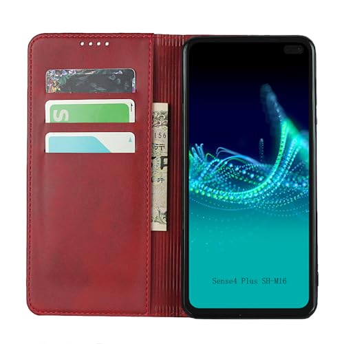 対応 Aquos sense4 plus ケース 手帳型 スマホケース アクオスセンス4プラス シャープ sense4plus SH-M16 カバー 手帳型 カードスロット、キックスタンド レザー(レッド)