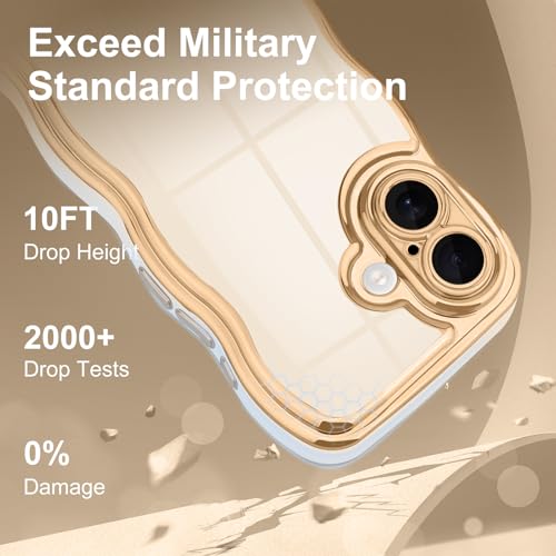Teageo iPhone 17 用 ケース、韓国ウェーブデザイン メッキ加工ケース 衝撃吸収 落下防止 カメラ保護 カバー 対応 iPhone 17(ホワイト)