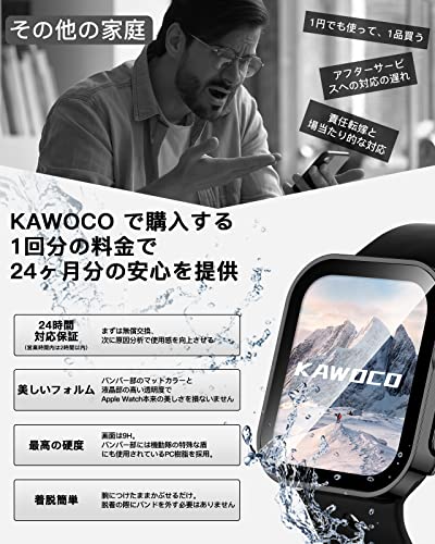 【2枚セット】Kawoco アップルウォッチ 防水 カバー 保護 iWatch 41mm Series9 Series8 Series7 直角エッデザイン apple watch 用 ケース 対応 41mm ブラック と シルバー