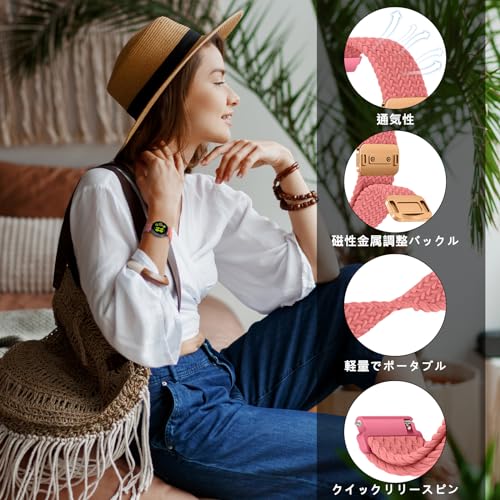 [ZoRoll] バンド 20 mm/22 mm ナイロンバンド 20ミリ 対応 編み伸縮性 腕時計ベルト スポーツストラップ 20ミリ 22ミリソフト 通気性 快適性 交換ベルト磁気クラスプ クイックリリース 脱着便利 男女兼用 (20 mm対応 ピンク)