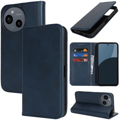 対応 AQUOS sense9 ケース 手帳型 スマホケース アクオスセンス9 SH-M29 SHG14 SH-53E カバー 手帳型 カードスロット、キックスタンド レザー(ネイビー)