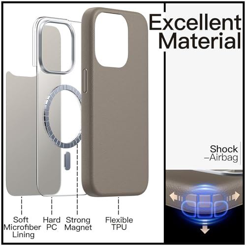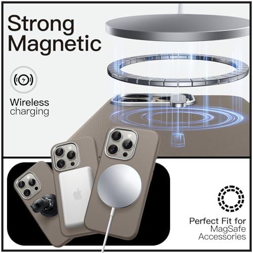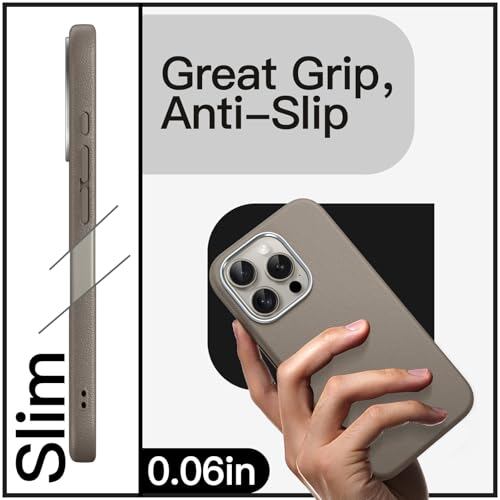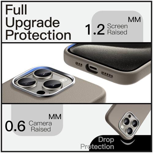 JETech iPhone 15 Pro 6.1インチ用 スリムケース MagSafeに対応 ソフトTPU 傷つけ防止 耐衝撃 フォンカバー レザーテクスチャーデザイン (ナチュラルチタニウム)