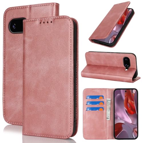 対応 Google pixel 9a ケース 手帳型 スマホケース グーグルピクセル9a カバー 手帳型 カードスロット、キックスタンド レザー(ローズゴールド)