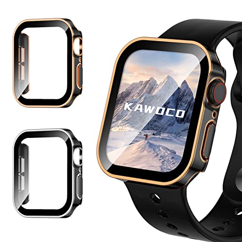【2枚セット】Kawoco アップルウォッチ 防水 カバー 保護 iWatch 41mm Series9 Series8 Series7 直角エッデザイン apple watch 用 ケース 対応 41mm ブラック/ローズゴールド と ブラック/シルバー