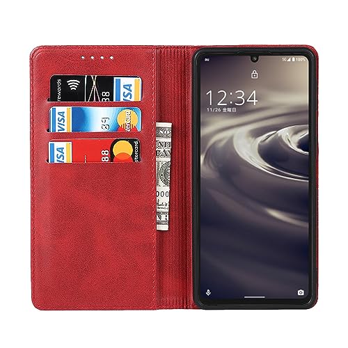 対応 Aquos sense6 ケース 手帳型 スマホケース アクオスセンス6 sense6s SH-M19 SHG05 SH-54B SHG07 カバー 手帳型 カードスロット、キックスタンド レザー(レッド)