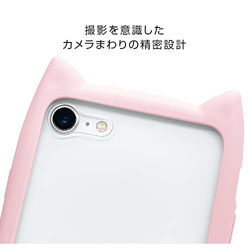 ラスタバナナ iPhone SE3 SE2 8 7 共用 ケース カバー ハイブリッド 背面強化ガラス 背面クリア TPUバンパー+GLASS mimi 猫 ネコ 猫耳 かわいい ライトピンク アイフォンse スマホケース 6835IP247HB