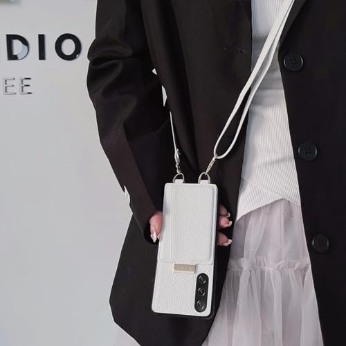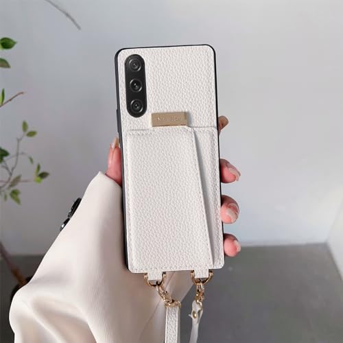 NanHou Xperia 10 V ケース 手帳型 高質PU(超繊皮革)ファッション手帳型 斜めショルダーストラップ付き(長さ調整可能)耐衝撃 保護 SO-52D ケース SOG11 ケース 背面鏡付き 人気 携帯カバー 女性 上品 カードポケット スタンド機能 リストバンド エクスペリア 10V ケース - しろい