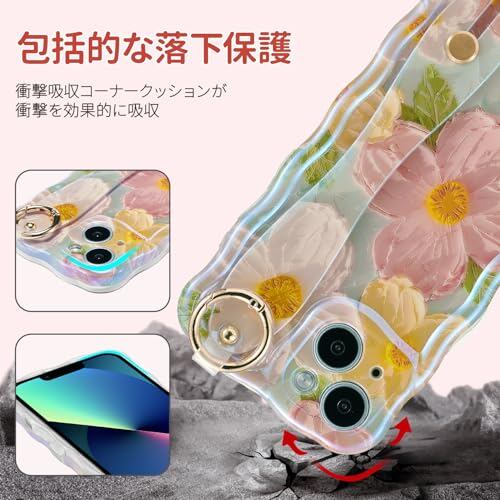 【花柄デザイン ▪ フィット感】背面にカラフルな油絵の花柄、色味が優しく、いつものスマホに上品さをプラス。側面が透明なデザインからiPhone 14カラーが見えるデザインで、本来の美しさと高級感をそのままに映り出し。