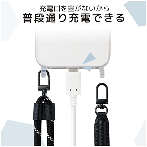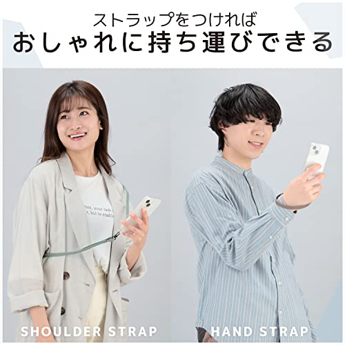 側面に弾力性のあるTPU素材を、背面には指紋が付きにくい特殊加工を採用した、強じんなポリカーボネート素材を使用しています。持ち運びに便利なスマホショルダーストラップやハンドストラップが取り付けられる、スリムなスタイルのiPhone 14、13用ハイブリッドケースです。 ※本製品にストラップは付属していません。