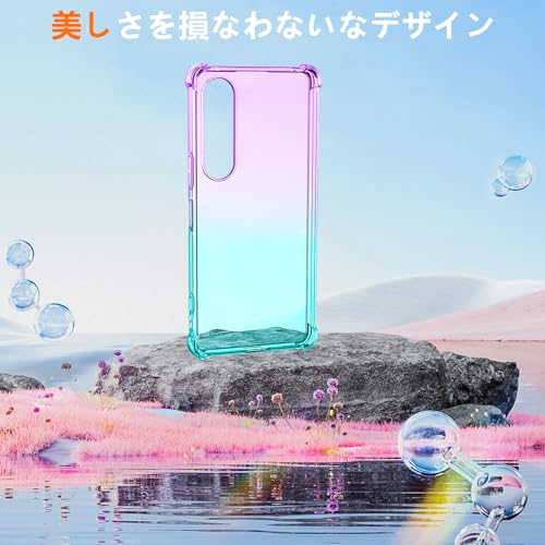 AQUOS R9 耐衝撃 ケース グラデーション SH-51E カバー TPU素材 米軍MIL規格 透明 衝撃吸収 ワイヤレス充電対応 レンズ保護 アクオス R9 ケース 紫/グリーン Q-SXJB-R9-10