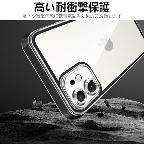 ALIGADUO iPhone 12 クリア ケース 耐衝撃 米軍MIL規格 アイフォン12 スマホケース PC背面 TPU カバー バンパー 保護ケース クリアバック 傷つけ防止 ワイヤレス充電対応 6.1インチ用(ブラック)