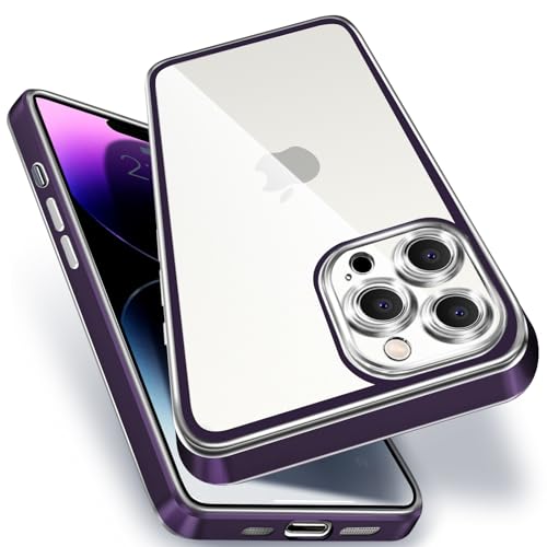 ALIGADUO iPhone 14Pro クリア ケース 耐衝撃 米軍MIL規格 アイフォン14Pro スマホケース PC背面 TPU カバー バンパー 保護ケース クリアバック 傷つけ防止 ワイヤレス充電対応 6.1インチ用(パープル)
