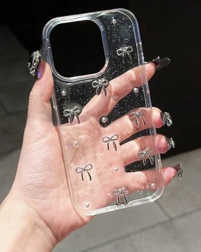 アイフォン17Air用ケース リボン クリアケース ドット キラキラ ラメラメ 背面クリア リボン 女子 シルバーリボン ストラップホール クリア 透明 シンプル 推し おしゃれ 可愛い インスタ映え ラメ入り ステッカー入れ アイホンケース アイフォンケース アイフォーンケース 背面 スマホ ケース カバー カワイイ お洒落 (アイフォン17Air用)