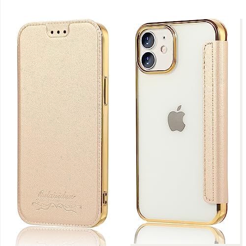 MuZiF iPhone11 用 ケース 手帳型 クリア 高級なPUレザー 耐衝撃性と耐摩耗性11用 全面保護耐衝撃、カード収納、人気財布型 カバー 軽量 アイフォン11 用 手帳カバー (iPhone 11,きんいろ)