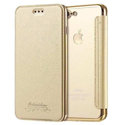 iPhone8 用 ケース 手帳型 iPhoneSE3 用 ケース iPhone7 /iPhoneSE2 用 手帳型 ケース クリア 高級なPUレザー 耐衝撃性と耐摩耗性SE3/7/8/SE2用 全面保護耐衝撃、カード収納、カバー 軽量 アイフォン(iPhone 8/Se3/Se2/7,きんいろ)