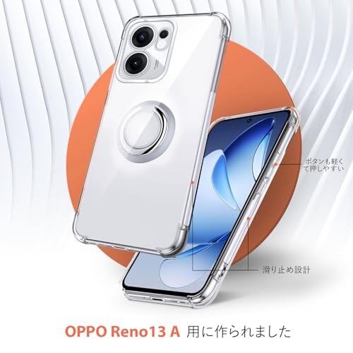 Rockaway 互換性 Oppo Reno13 A用 ケース リング付き 耐衝撃 耐久 すり傷防止 滑り止め スタンド機能 軽量 薄型 クリア TPU 透明 スマホケース オッポ リノ13a 用カバー - クリア
