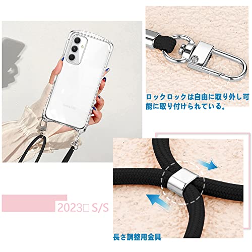 Galaxy A54 ケース クリア ショルダー SC-53D SCG21 ギャラクシーA54 5G カバー スマホケース 耐衝撃 全透明 TPU ストラップ付き 肩掛け 首掛け 紐付き 斜めがけ シリコン 取り外し可能 長さ調整可能(クリア)