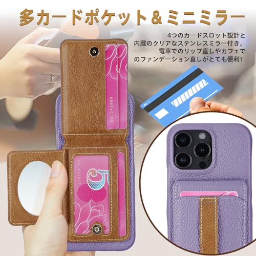 For Google Pixel 10/10 Pro ケース 背面 手帳型 For グーグル ピクセル10プロ カバー 背面 財布型 COCOCLOUD 背面ポケット付き 上品 高級PUレザー 鏡付き 5枚のカードを収納【上下開】 横置き&縦置きスタンド機能 PUリンク マグネット開閉式 耐衝撃 全面保護 ハンドメイド 汗や指紋防止 肌触り良い パープル