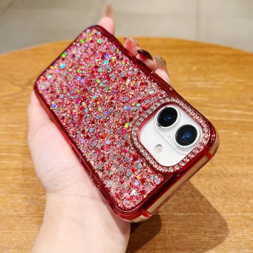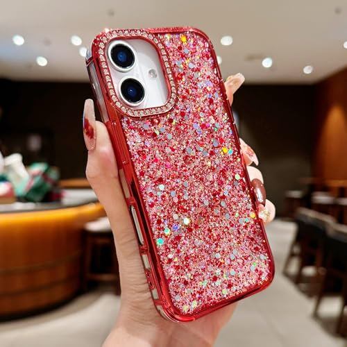 Pepmune iPhone 16 用 ケース キラキラ ラメ かわいい おしゃれ アイフォン16 用 バンパーケース 軽量 耐衝撃 人気 韓国 保護 衝撃吸収 落下防止 女性用 可愛い カバー (レッド)