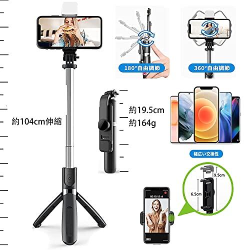 【7階段伸縮・360度の回転・長距離調節】7階段自由に伸縮りて、最大距離は104cmです、ちょうどいい自撮り距離でどんな場所でもシーンをうまく自撮りできます。スマホホルダーは360度の回転できて,自由に全域の多角度を調整可能です。スマホは携帯固定フォルダーにきちんと固定し、横撮り、縦撮り好きな角度に調節できます。重要なのは滑り止めゴムを付いて、本体を傷つけないし、落ちにくく、君のスマホをしっかり守ります。