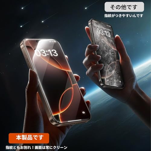 【指紋99%防止&軍用級撥コート】最新電気メッキ技術で10万回の摩擦に耐える防水防油層を形成。汗・油・化粧品をはじき、画面を常に新品状態に維持。0.33mmの超薄設計がタッチ感度を損なわず、ゲーム操作も快適。透明度が高く、画面そのままの美しさを保ちます。さらにガラスフィルムを貼っていないかのような触り心地です。