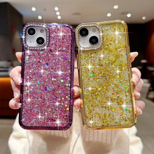 Pepmune iPhone 14/iPhone 13 用 ケース キラキラ ラメ かわいい おしゃれ アイフォン14/アイフォン13 用 バンパーケース 軽量 耐衝撃 人気 韓国 保護 衝撃吸収 落下防止 女性用 可愛い カバー (パープル)