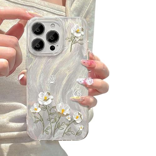 LUCKCOF ケース For iPhone 16 Pro 可愛い 花柄 韓国 キラキラ ボウノット TPUカバー 衝撃吸収 落下防止 アイフォン 16 Pro 專用スマホ ケース カバー 薄型 特製スマホケース レンズ保護 スレ傷防止 女子力 ファッションクリエイティブかわいい 美しい携帯電話ケース