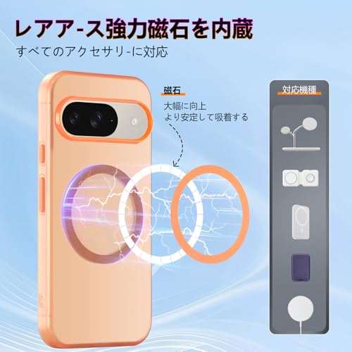 Google Pixel9 ケース Pixel9Pro MagSafe対応 クリア カバー グーグル ピクセル9 耐衝撃 スマホケース 米軍MIL規格 PC背面 TPU 保護ケース ストラップホール付き クリアバック 落下防止 オレンジ
