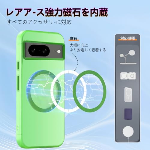 Google Pixel8 ケース MagSafe対応 クリア カバー グーグル ピクセル8 耐衝撃 スマホケース 米軍MIL規格 PC背面 TPU 保護ケース ストラップホール付き クリアバック 落下防止 グリーン