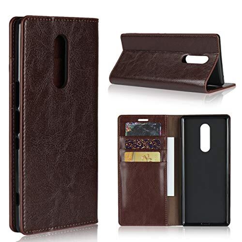 SKIASE Xperia 1 ケース SO-03L SOV40 802SO エクスぺリア1 本革 手帳型ケース カバー マグネット無し 落ち着い色 シンプルデザイン レトロ カードポケット スタンド機能 ダークブラウン