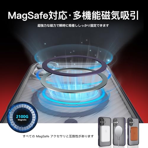 【MagSafe対応/ワイヤレス充電】本製品はMagSafe対応で、強力な磁力で高速かつ効率的なワイヤレス充電が可能です。汎用性が高く、車載マウントやホルダーに取り付けることができ、運転中にスマートフォンを快適に使用できます。また、さまざまなMagSafeアクセサリと組み合わせることができ、内蔵の磁気リングでデバイスをしっかりと固定し、安全でスムーズな充電を実現します。また、Qi規格にも対応しており、幅広いワイヤレス充電器と互換性があります。