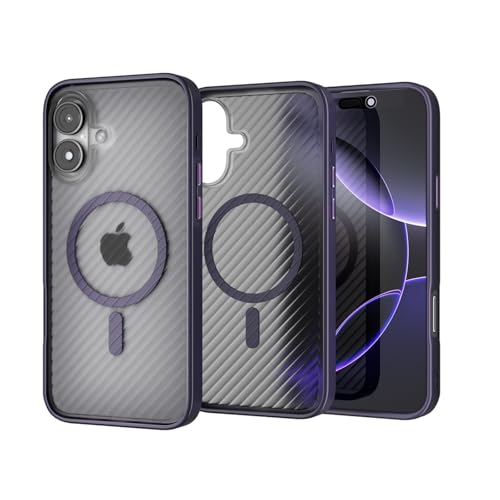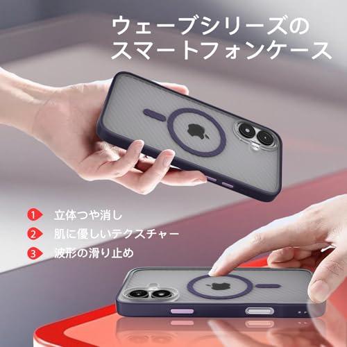 iPhone 16 Plus ケース MagSafe対応 【立体波形デザイン】 耐衝撃 肌に優しい感触 滑り止め ワイヤレス充電対応 いphone 16 Plus スマホケース 衝撃吸収 ストラップホール付き アイフォン 16Plus カバー 指紋防止 落下防止 防塵 傷防止 人気 半透明 (パープル)