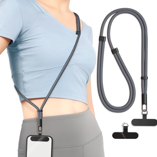[Lamiishop] スマホストラップ 携帯ストラップ 首掛け&肩掛け 長さ調節可能 スマホ ショルダーストラップ 肩掛け TPU+金属製ストラップホルダー2枚入り 360°回転 ネックストラップ 7mm太さナイロンロープ 落下防止/紛失防止 ダークグレー